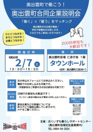奥出雲町内の17企業が集結し、合同企業説明会を開催します!